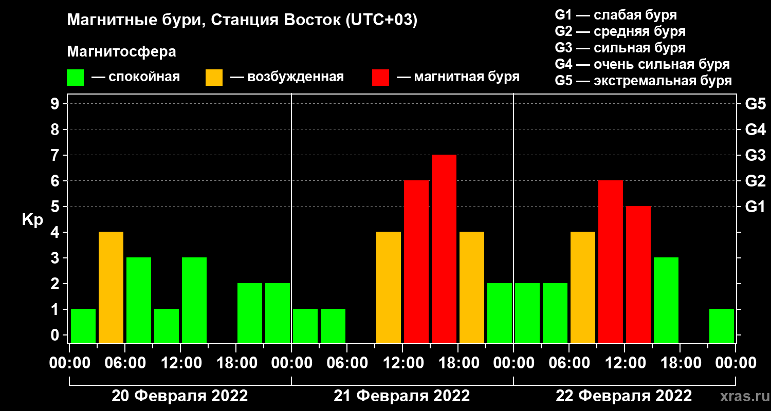 Магнитные бури локации Станция Восток — 22 февраля 2022 года
