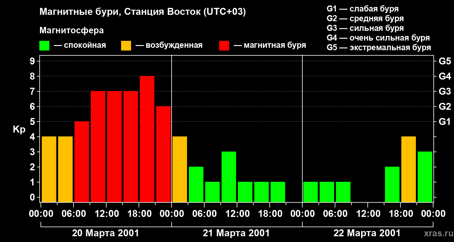 Магнитные бури локации Станция Восток 22 марта 2001 года