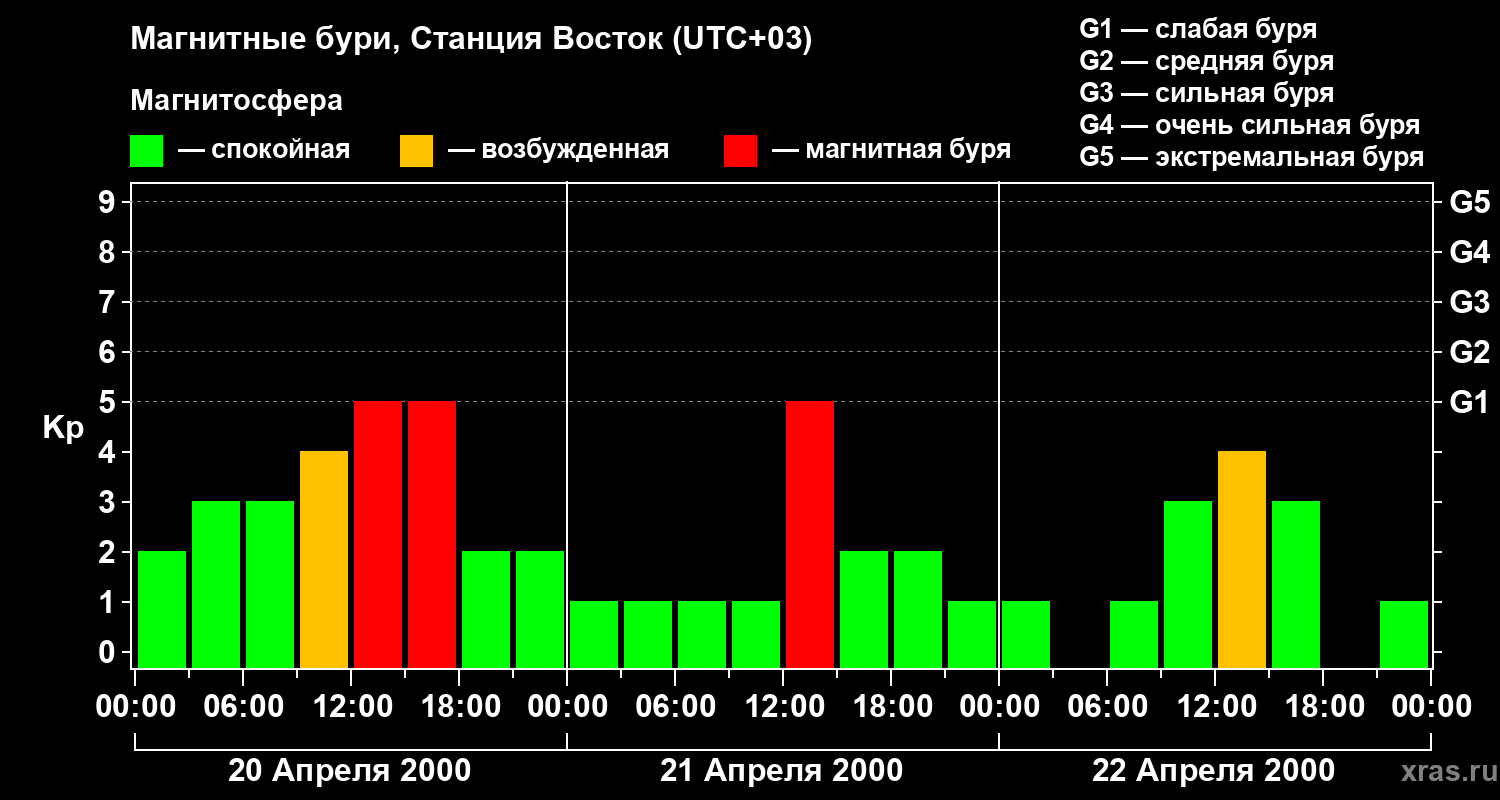 Магнитные бури локации Станция Восток — 22 апреля 2000 года