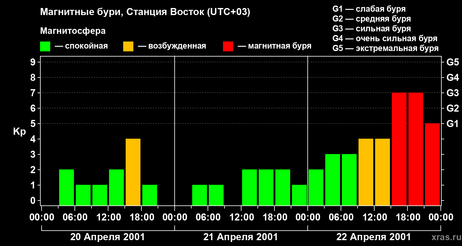 Магнитные бури локации Станция Восток — 22 апреля 2001 года