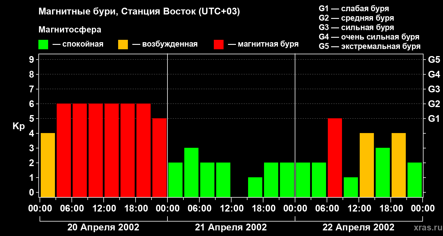 Магнитные бури локации Станция Восток — 22 апреля 2002 года