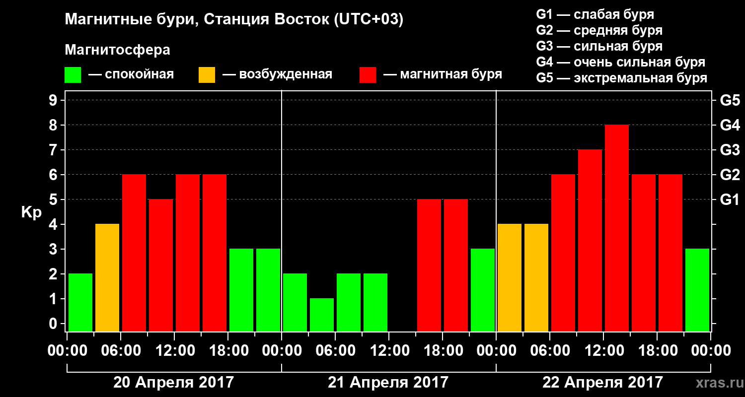 Магнитные бури локации Станция Восток — 22 апреля 2017 года