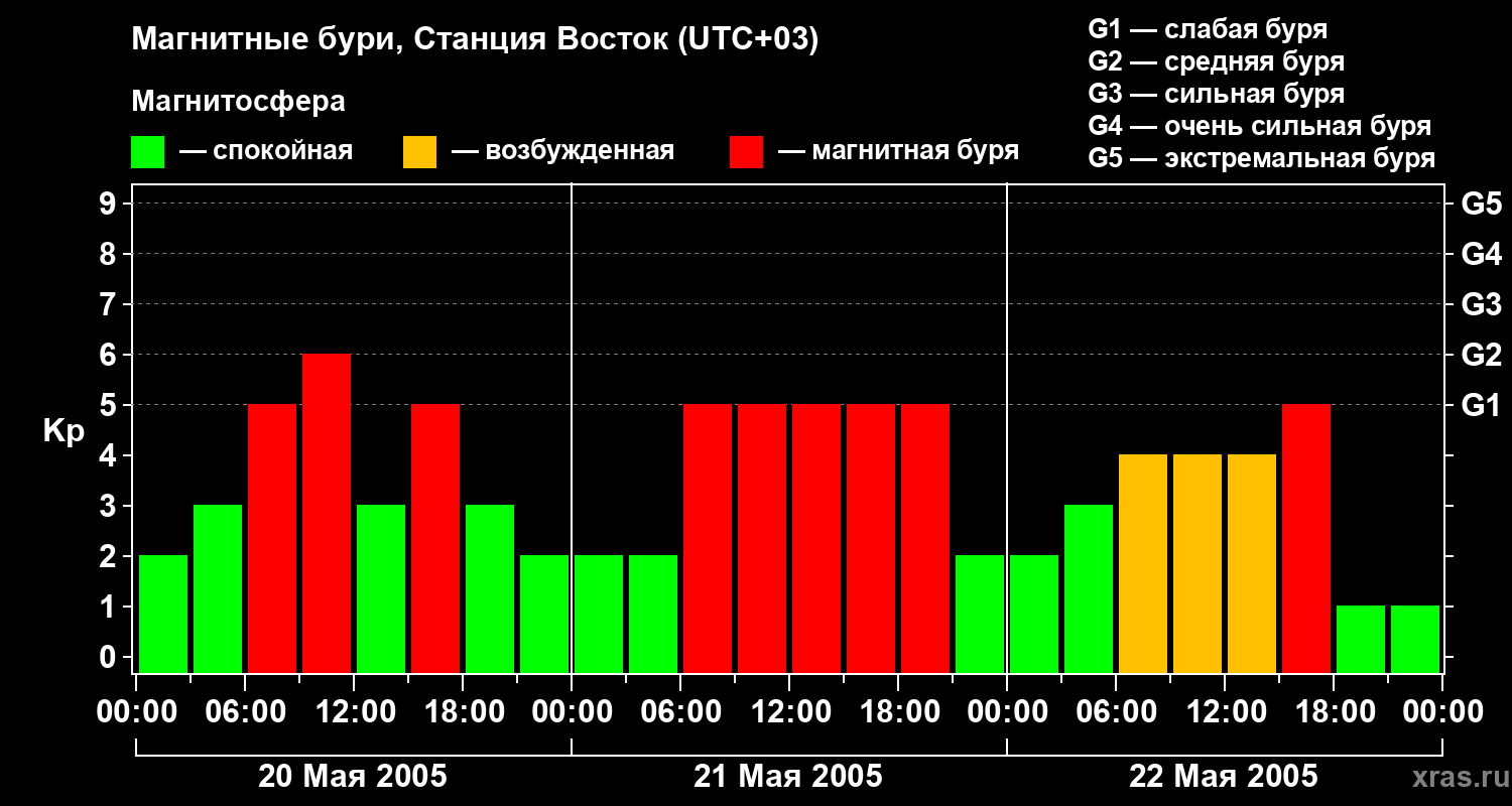 Магнитные бури локации Станция Восток — 22 мая 2005 года