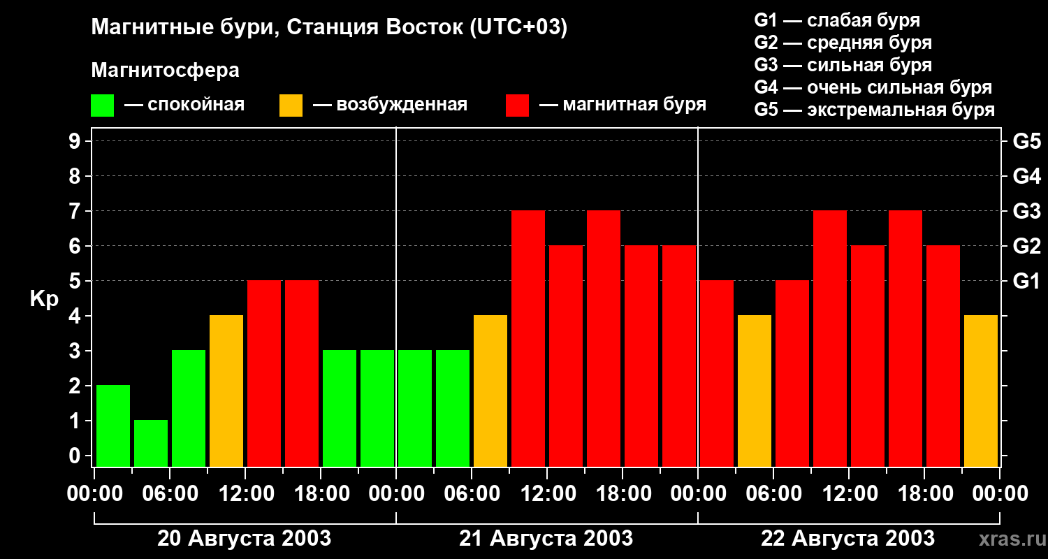Магнитные бури локации Станция Восток — 22 августа 2003 года