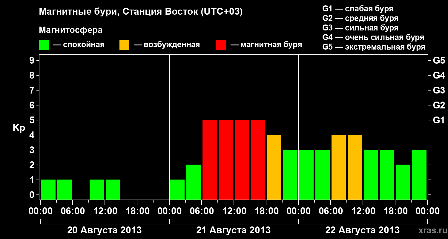 Магнитные бури локации Станция Восток — 22 августа 2013 года