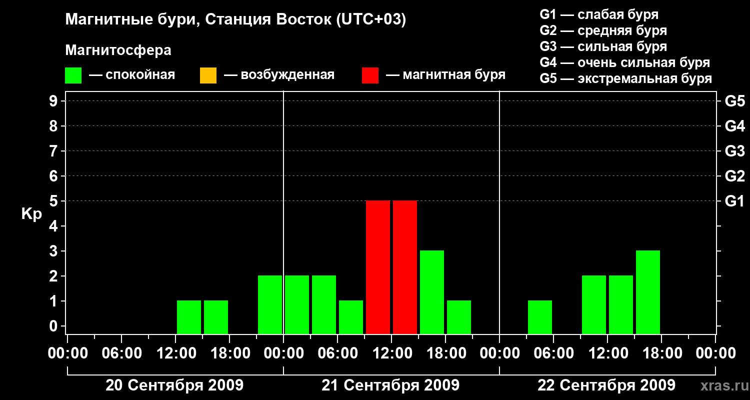 Магнитные бури локации Станция Восток 22 сентября 2009 года