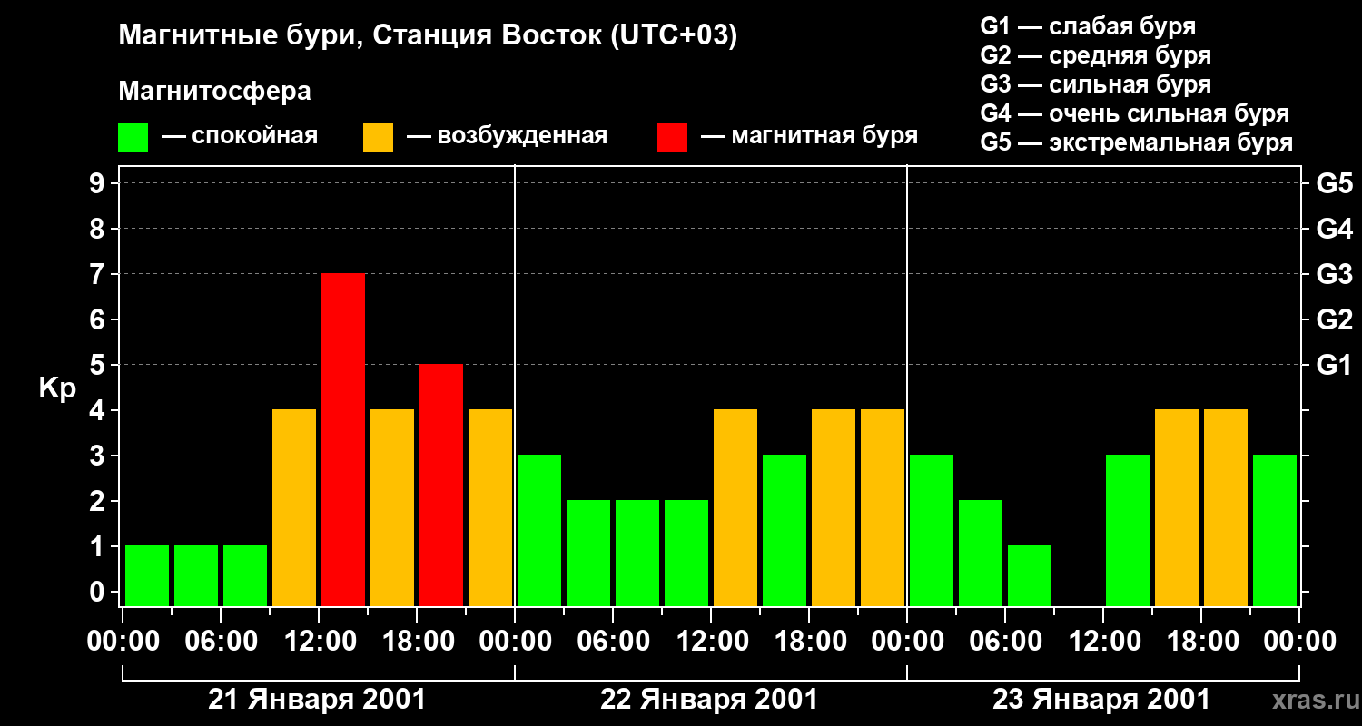 Магнитные бури локации Станция Восток — 23 января 2001 года