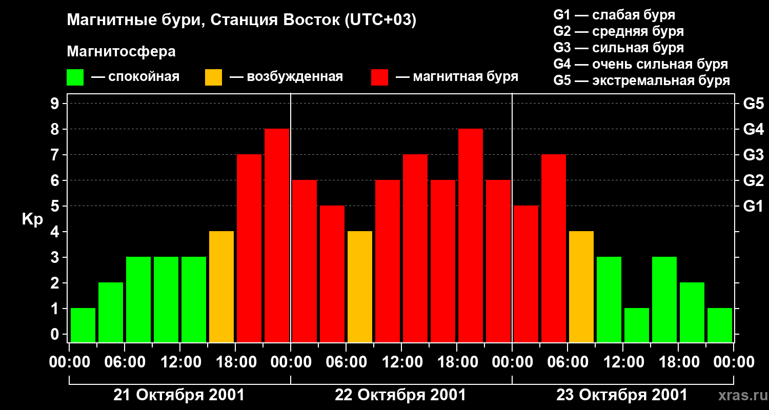 Магнитные бури локации Станция Восток — 23 октября 2001 года
