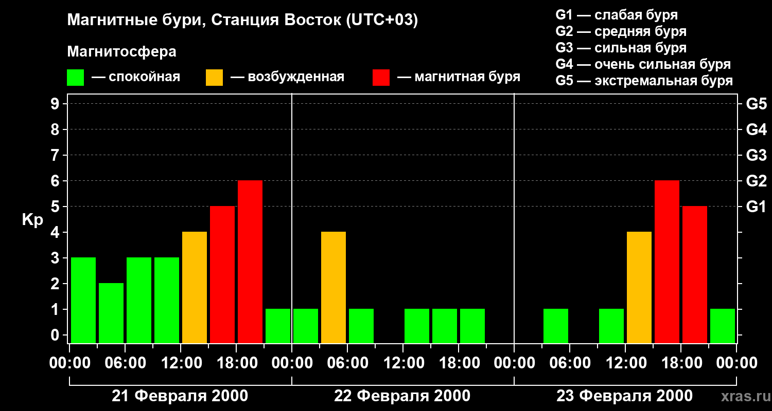 Магнитные бури локации Станция Восток — 23 февраля 2000 года