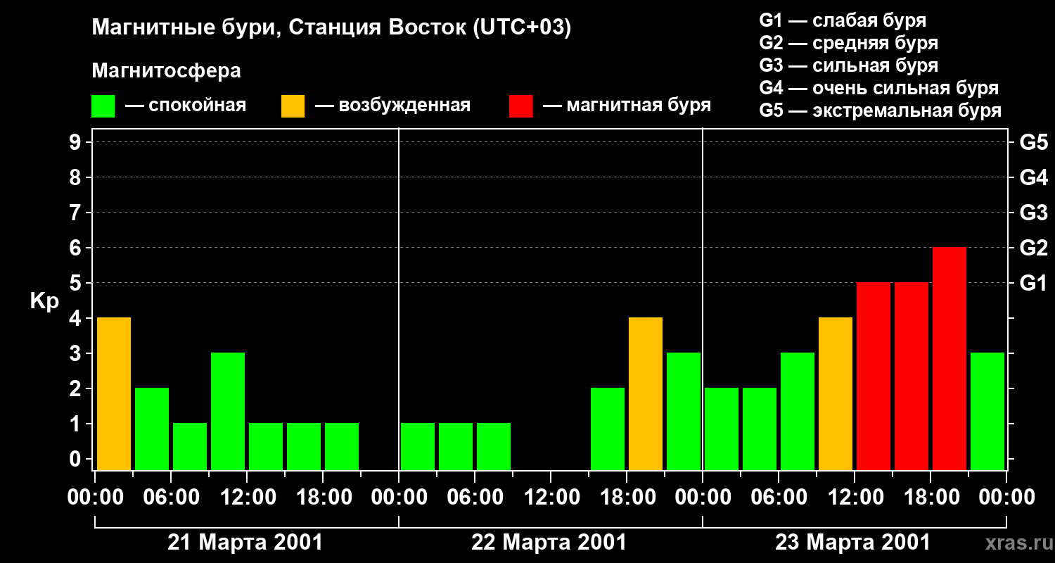 Магнитные бури локации Станция Восток — 23 марта 2001 года