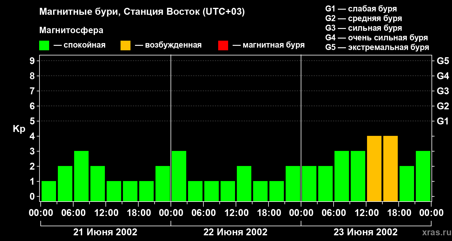 Магнитные бури локации Станция Восток — 23 июня 2002 года