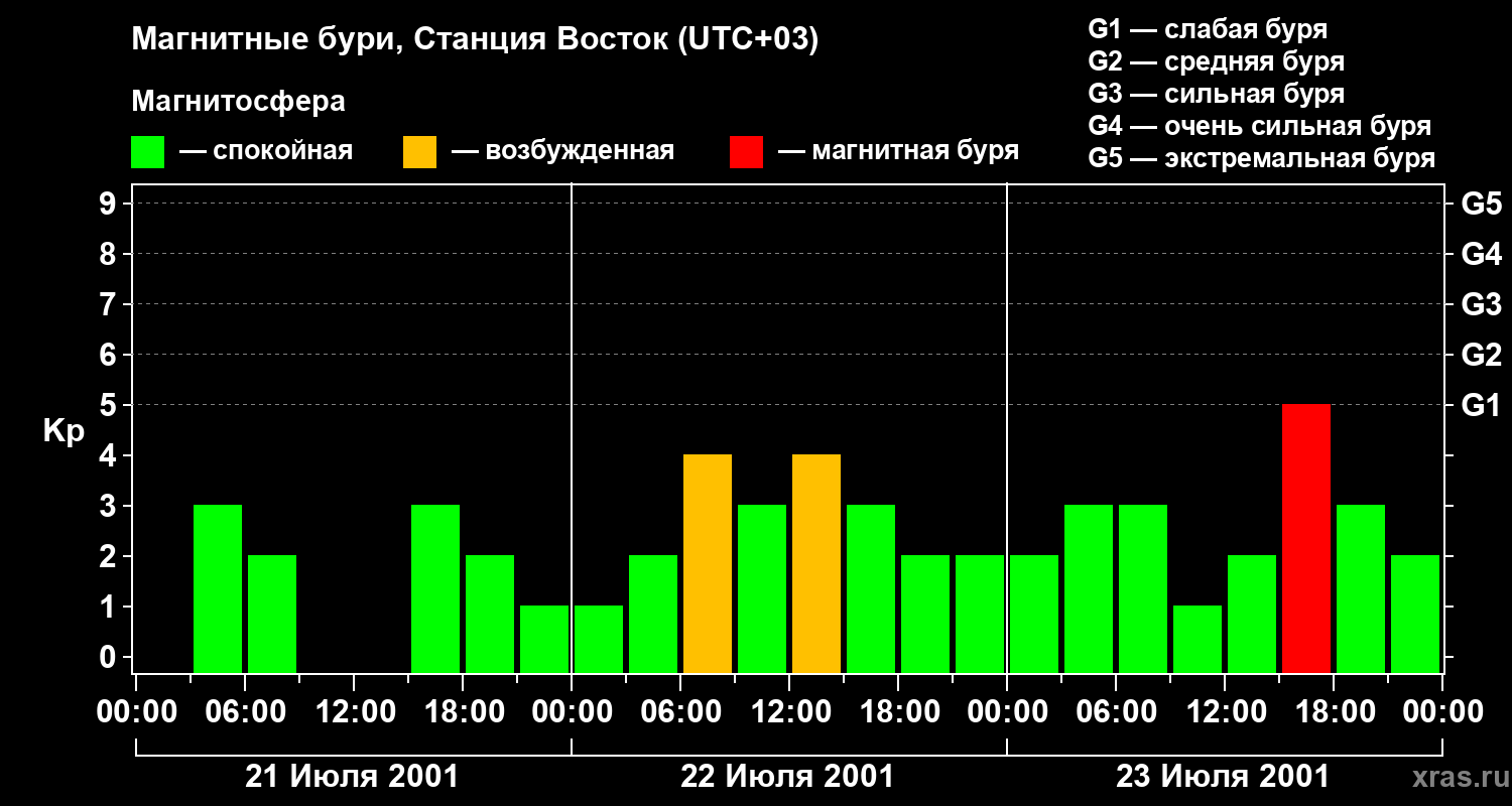 Магнитные бури локации Станция Восток — 23 июля 2001 года