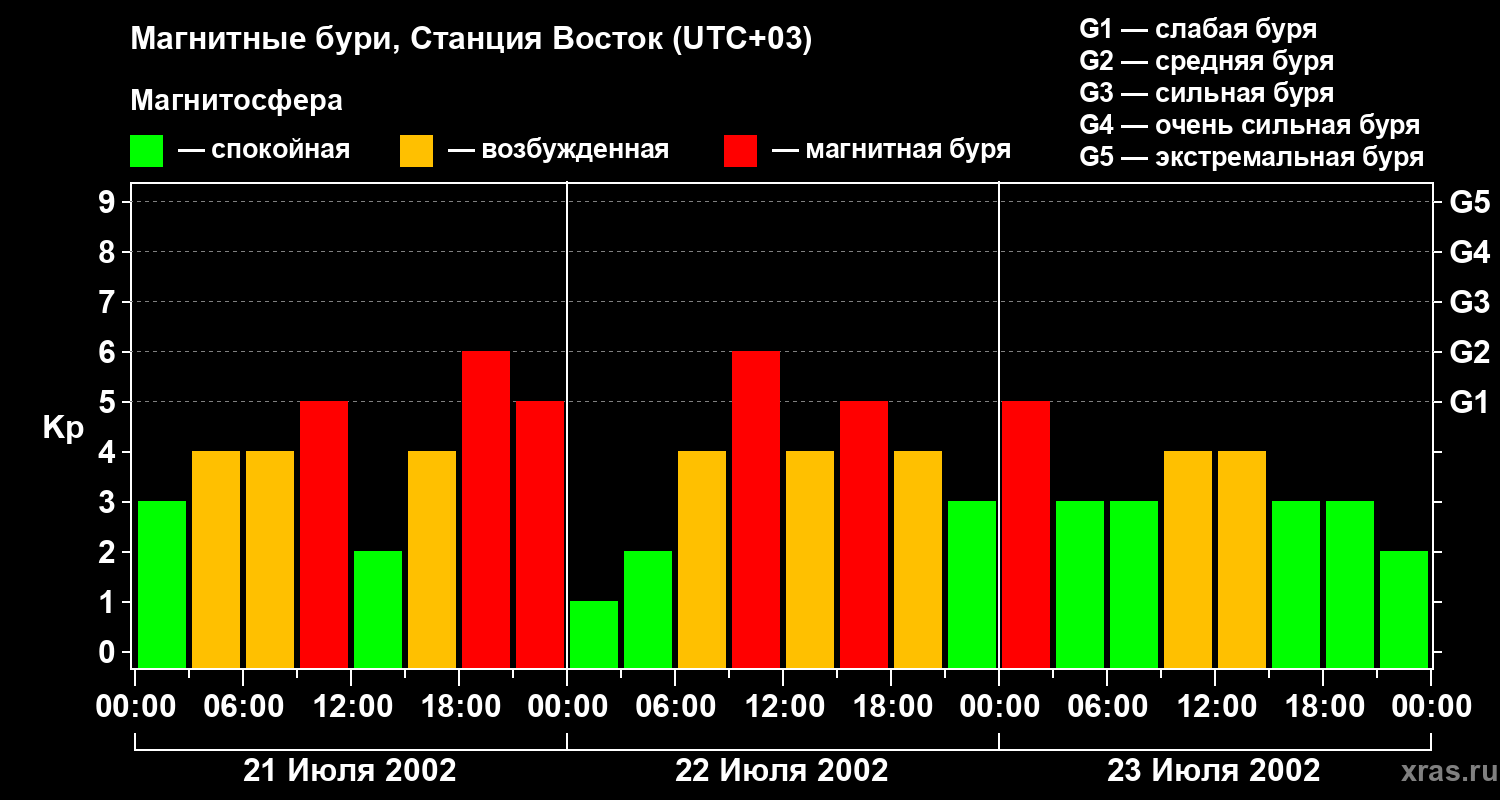 Магнитные бури локации Станция Восток — 23 июля 2002 года