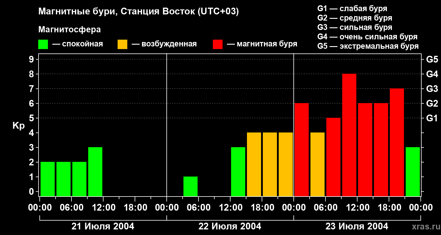 Магнитные бури локации Станция Восток — 23 июля 2004 года