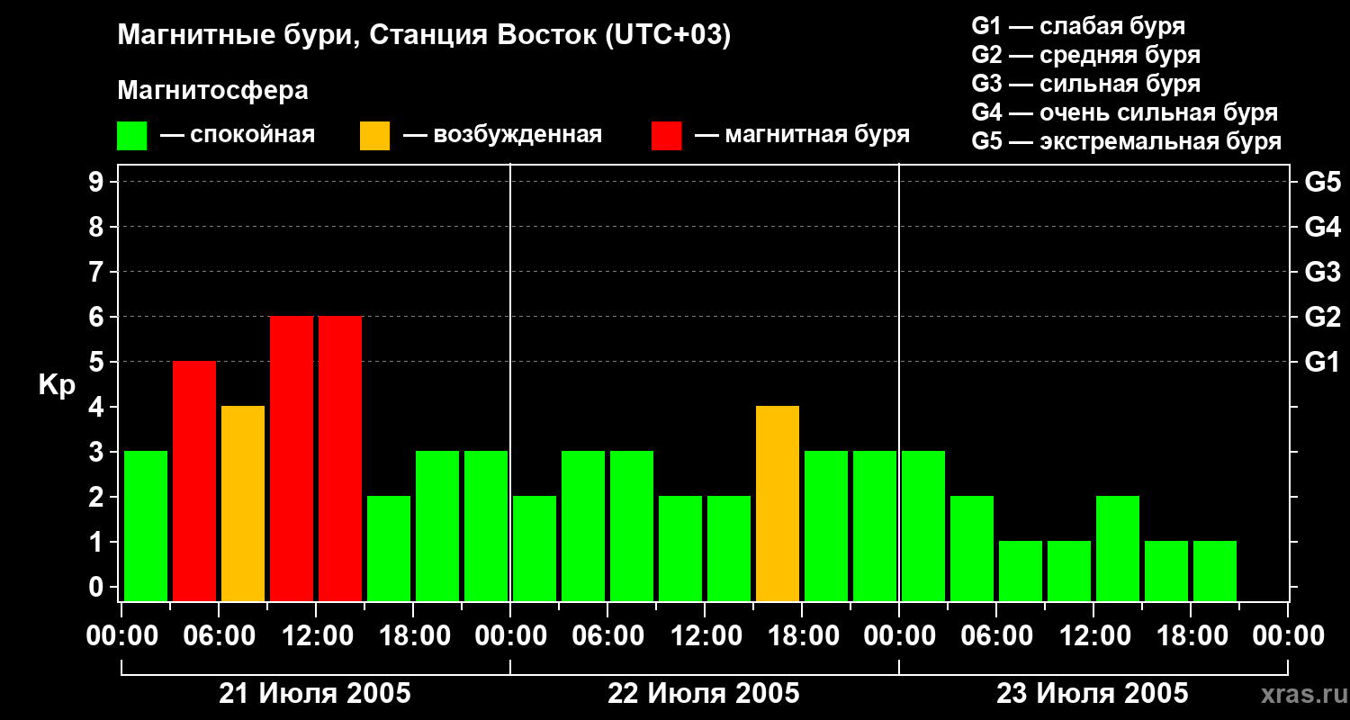 Магнитные бури локации Станция Восток — 23 июля 2005 года