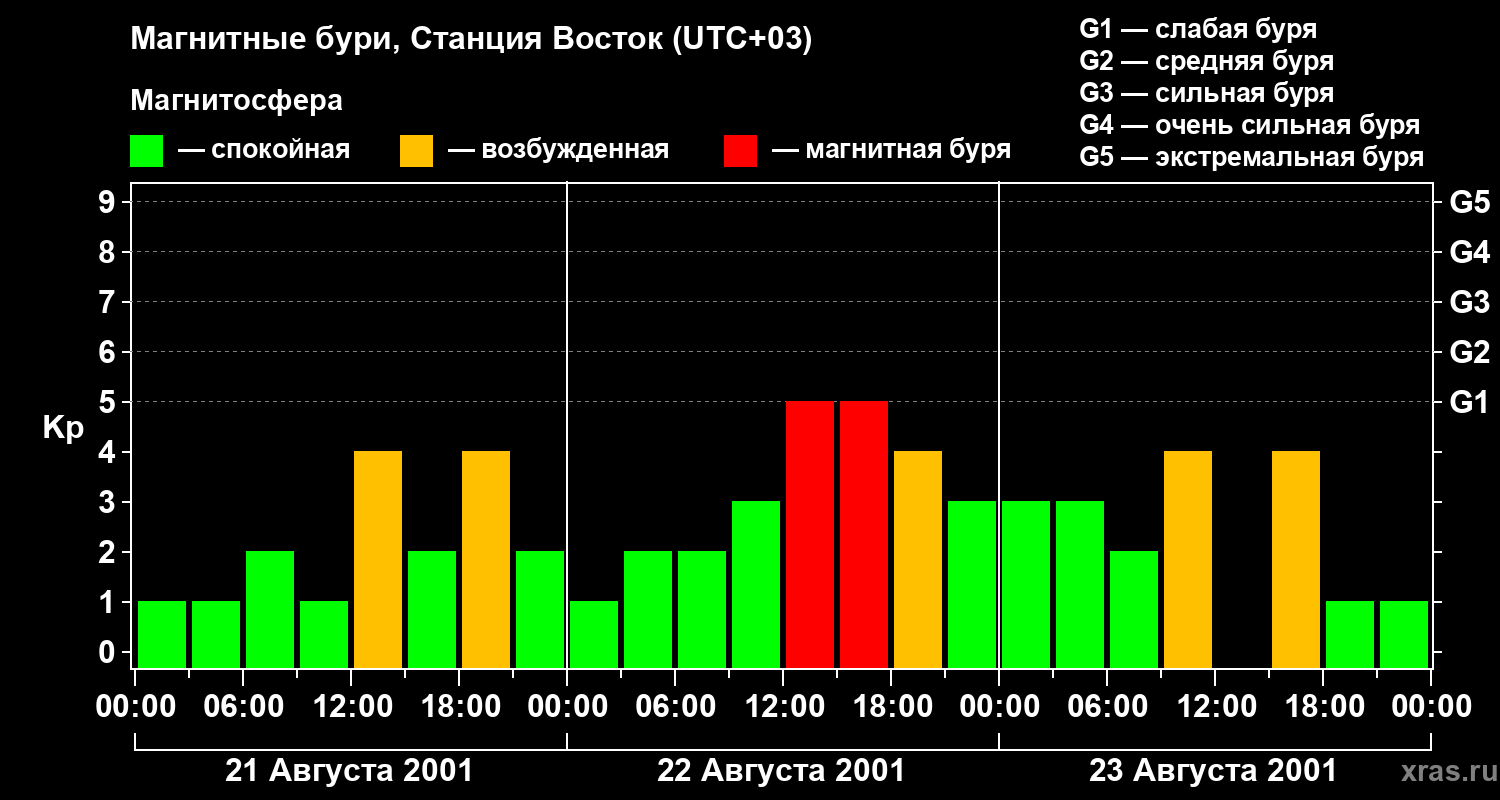 Магнитные бури локации Станция Восток — 23 августа 2001 года
