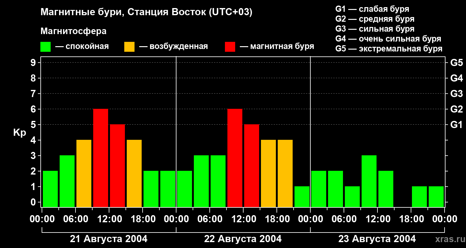 Магнитные бури локации Станция Восток — 23 августа 2004 года