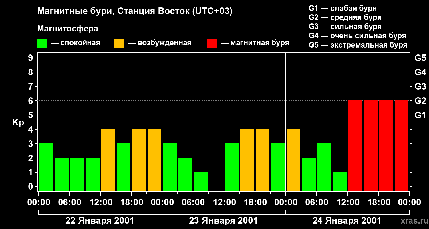 Магнитные бури локации Станция Восток — 24 января 2001 года