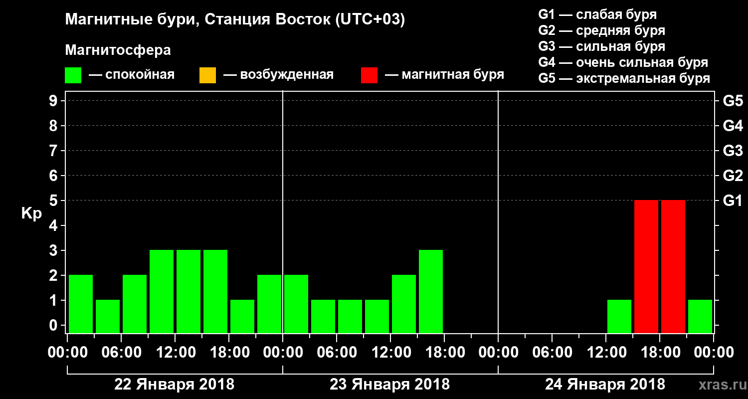 Магнитные бури локации Станция Восток — 24 января 2018 года