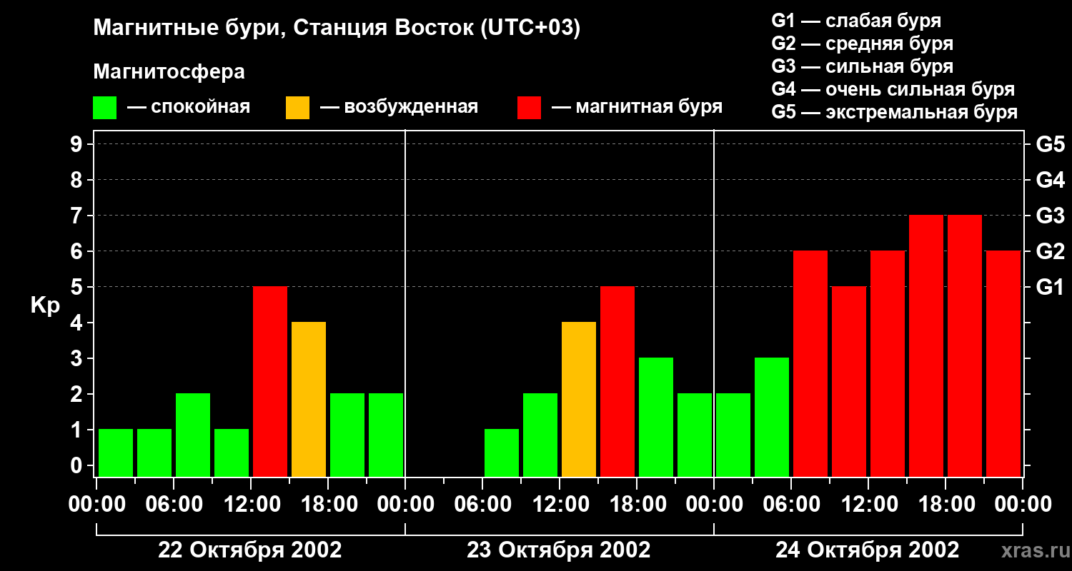 Магнитные бури локации Станция Восток — 24 октября 2002 года