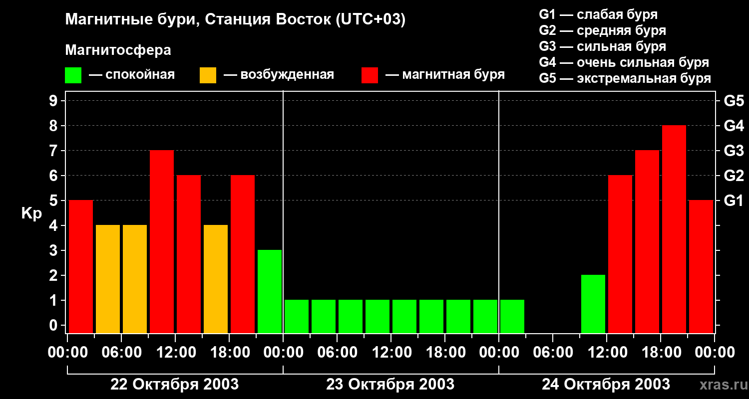 Магнитные бури локации Станция Восток — 24 октября 2003 года