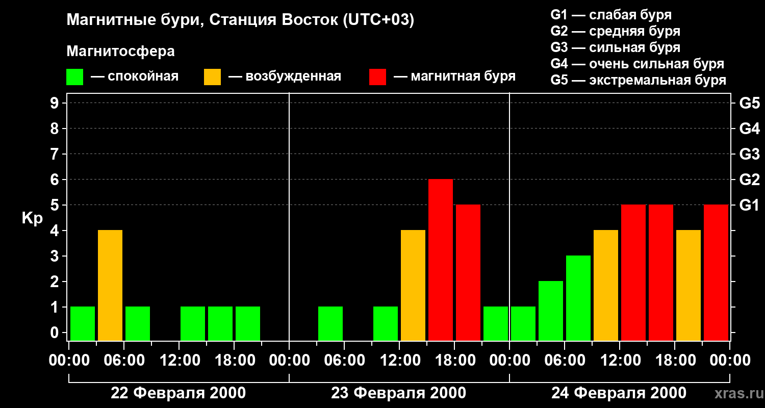 Магнитные бури локации Станция Восток — 24 февраля 2000 года