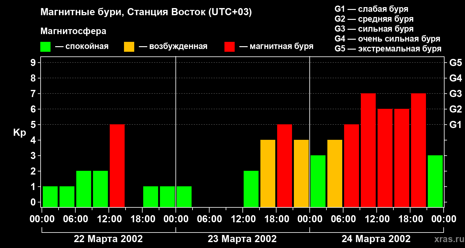 Магнитные бури локации Станция Восток — 24 марта 2002 года