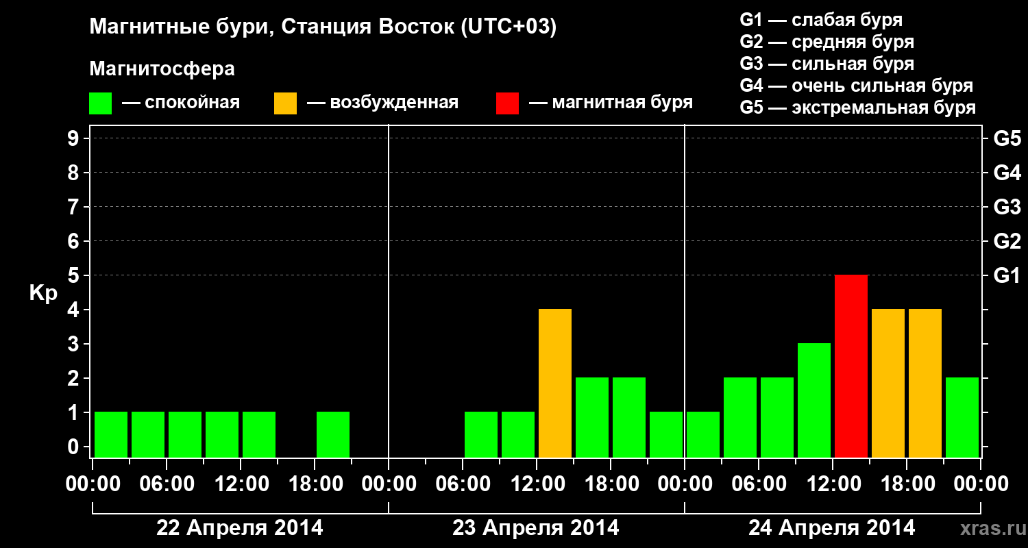 Магнитные бури локации Станция Восток — 24 апреля 2014 года