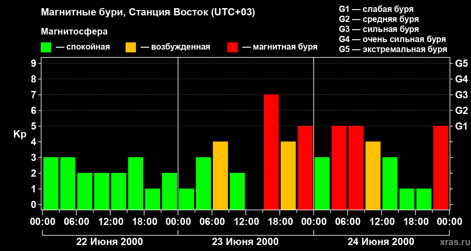 Магнитные бури локации Станция Восток — 24 июня 2000 года