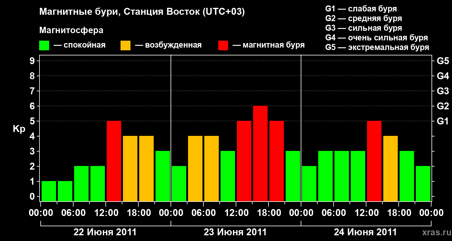 Магнитные бури локации Станция Восток — 24 июня 2011 года