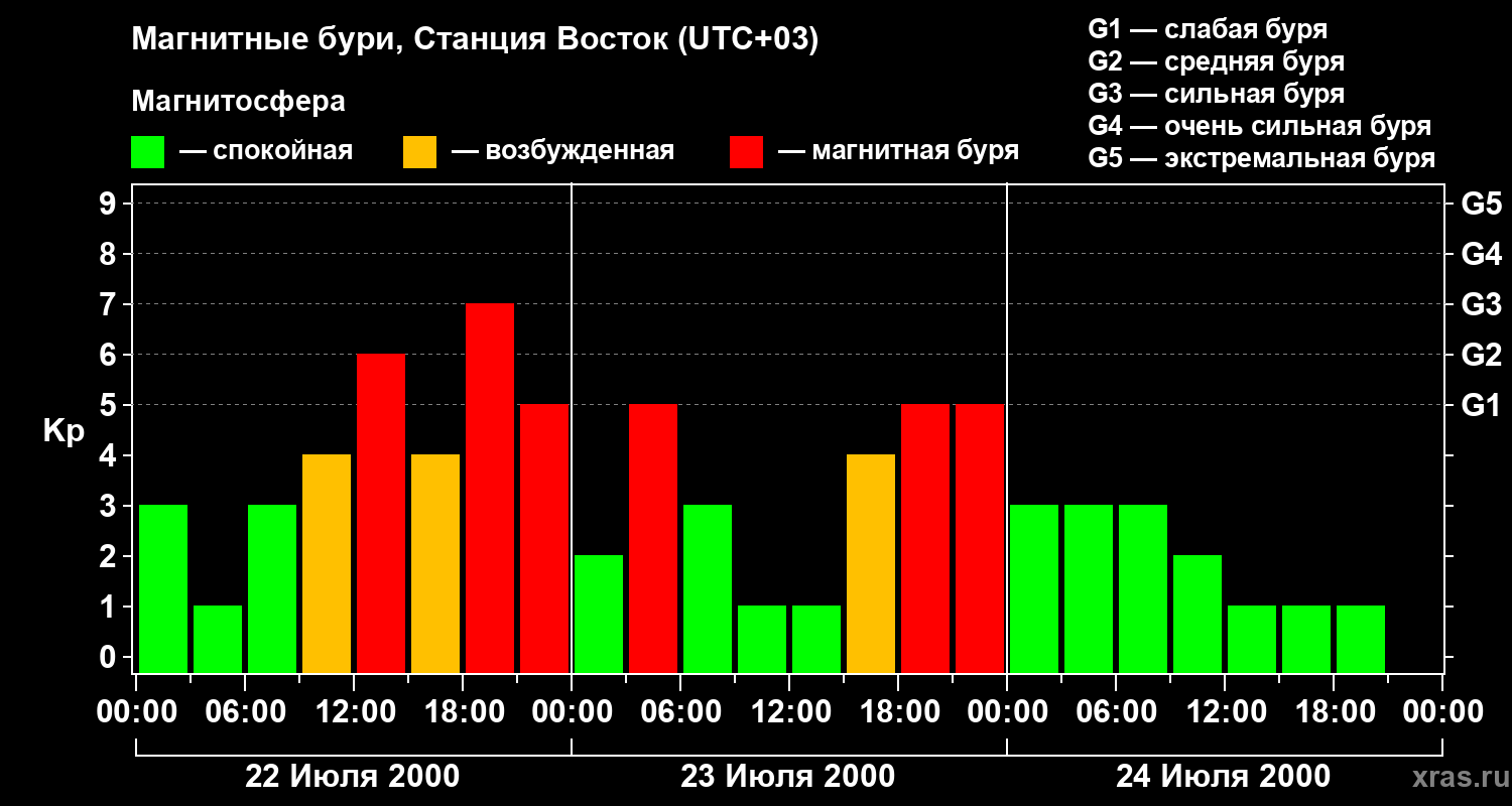 Магнитные бури локации Станция Восток 24 июля 2000 года