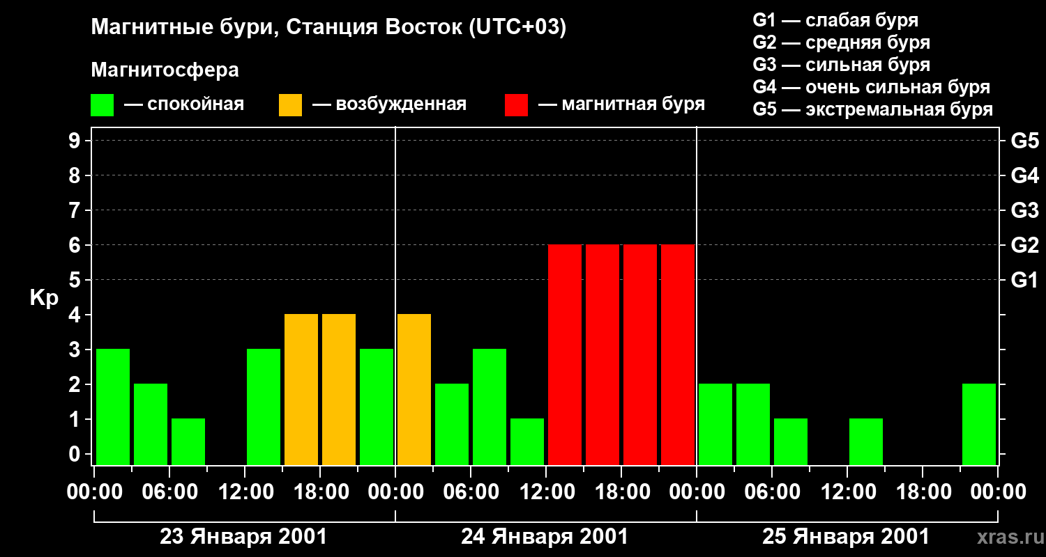 Магнитные бури локации Станция Восток — 25 января 2001 года