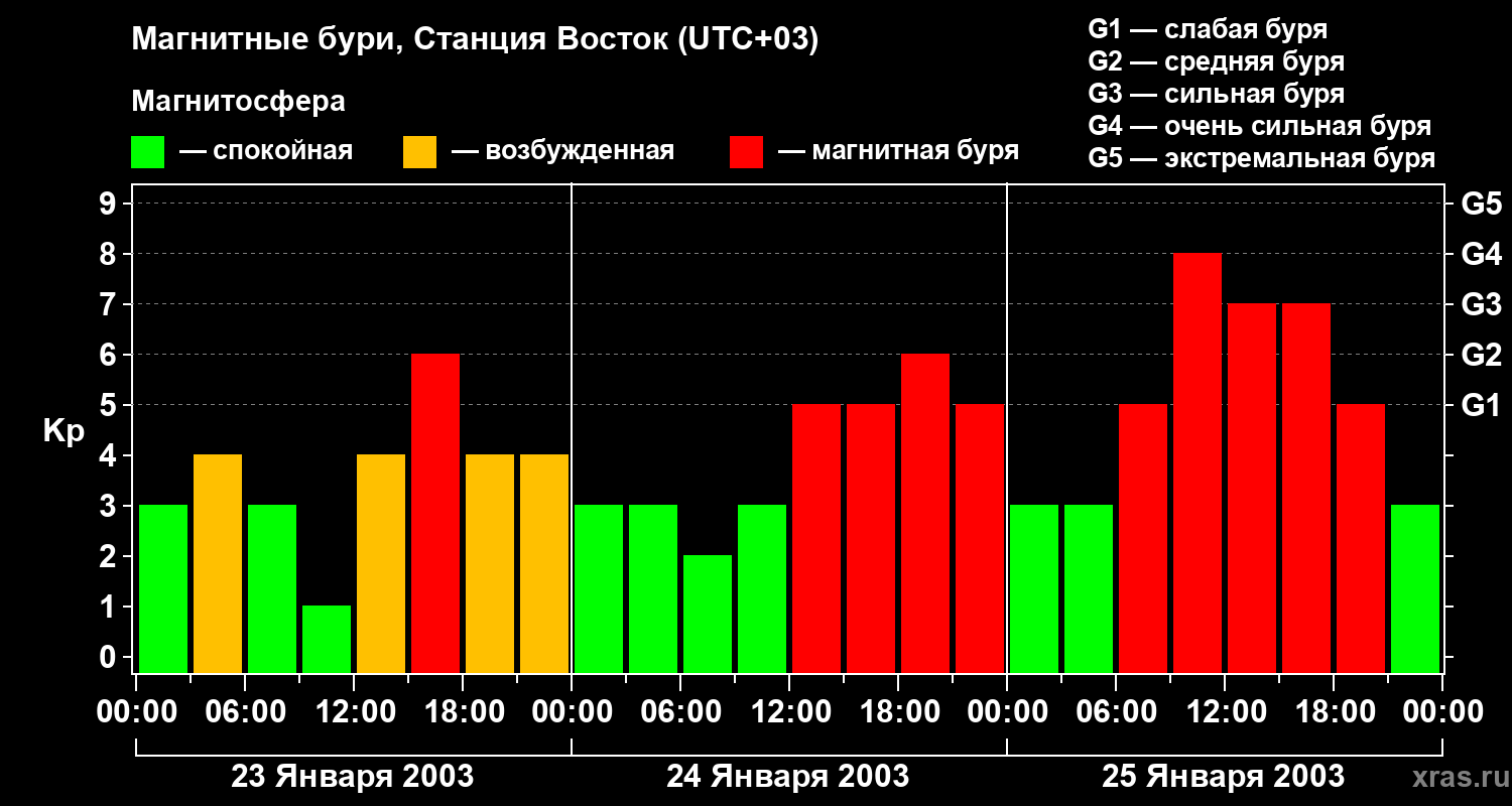 Магнитные бури локации Станция Восток 25 января 2003 года