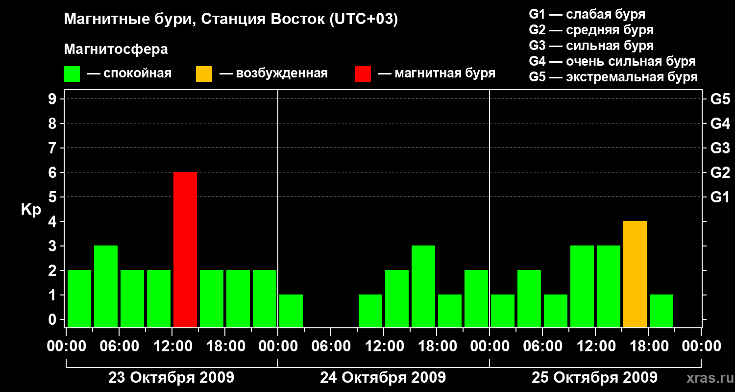 Магнитные бури локации Станция Восток — 25 октября 2009 года