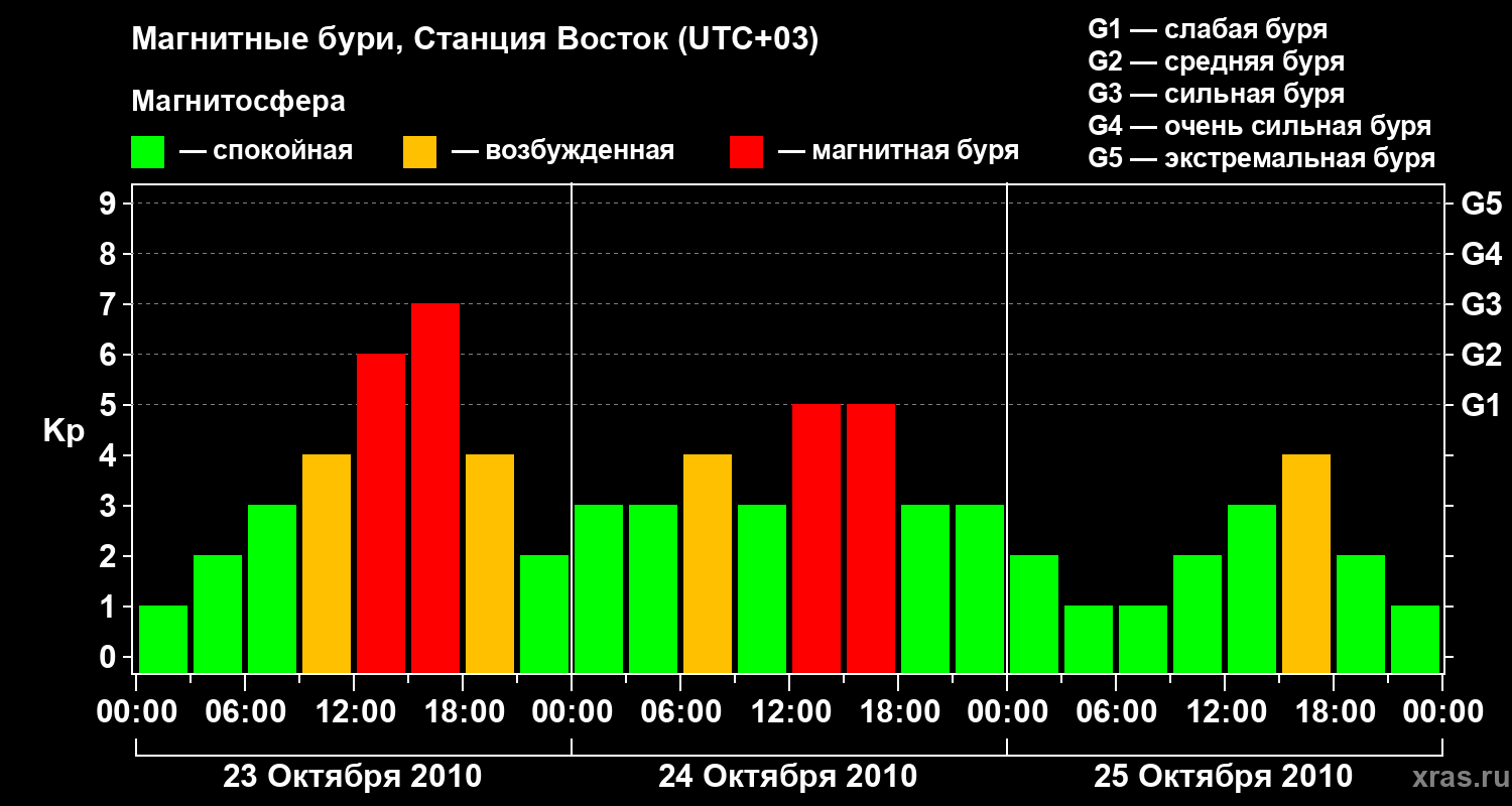Магнитные бури локации Станция Восток 25 октября 2010 года