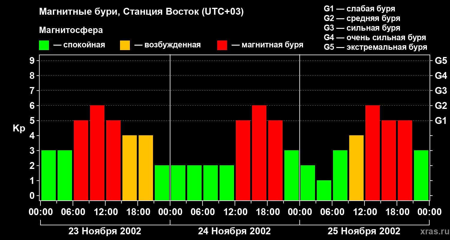 Магнитные бури локации Станция Восток 25 ноября 2002 года