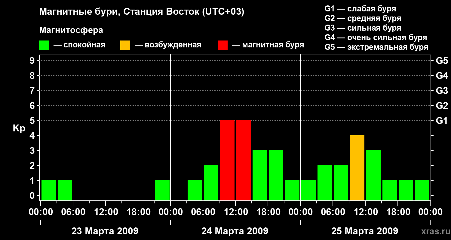 Магнитные бури локации Станция Восток — 25 марта 2009 года