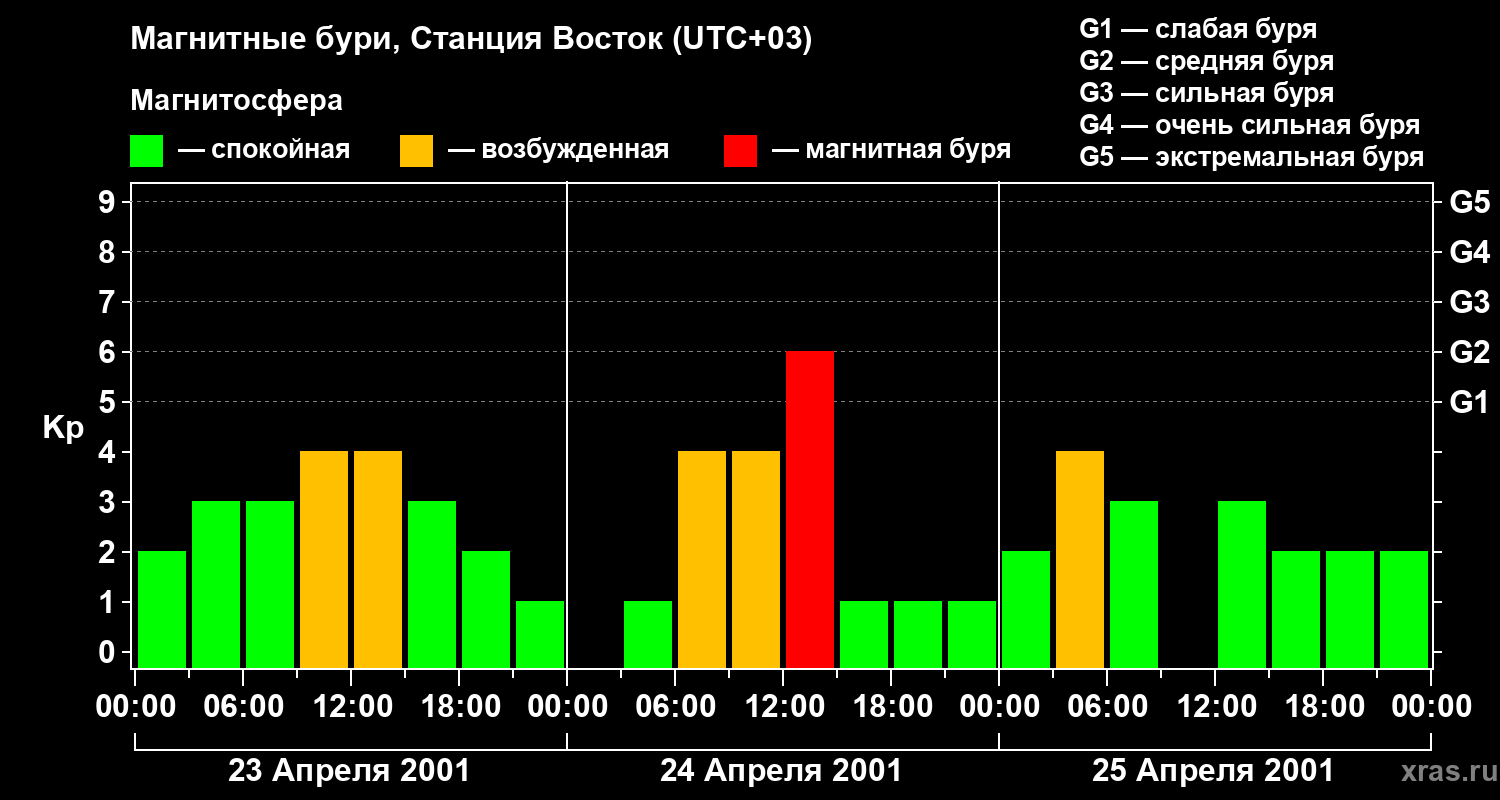 Магнитные бури локации Станция Восток — 25 апреля 2001 года