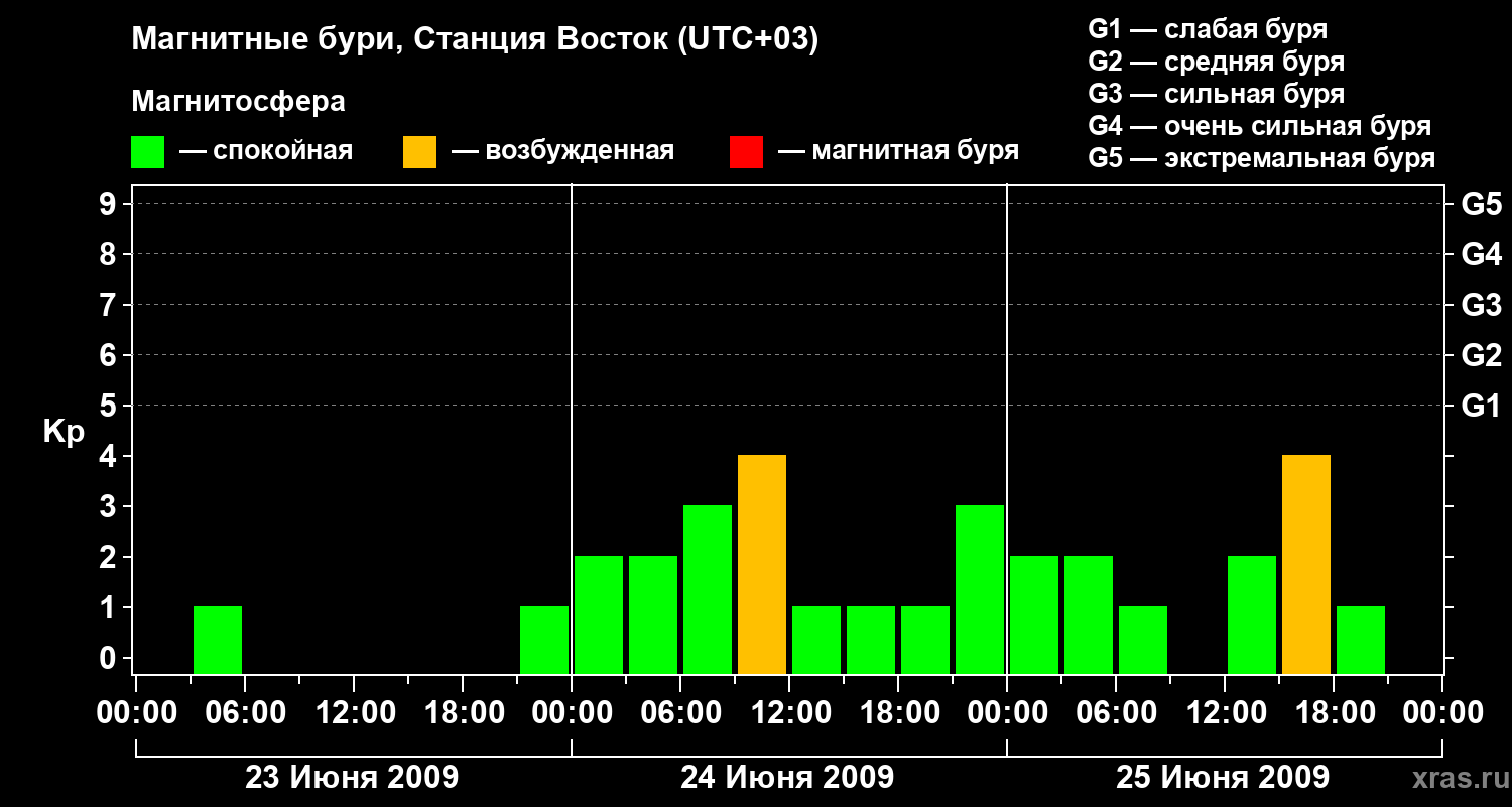 Магнитные бури локации Станция Восток 25 июня 2009 года