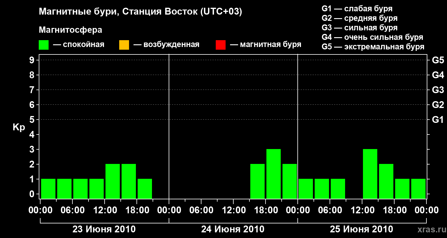 Магнитные бури локации Станция Восток 25 июня 2010 года