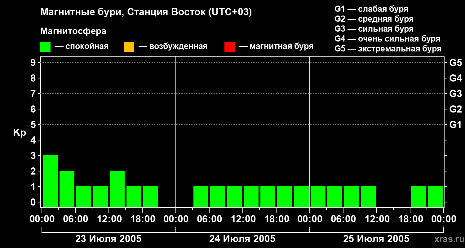 Магнитные бури локации Станция Восток 25 июля 2005 года