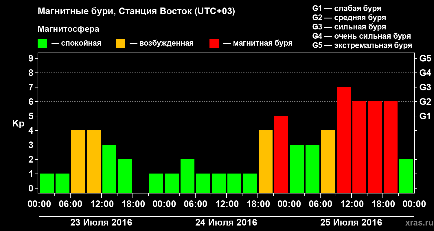Магнитные бури локации Станция Восток — 25 июля 2016 года