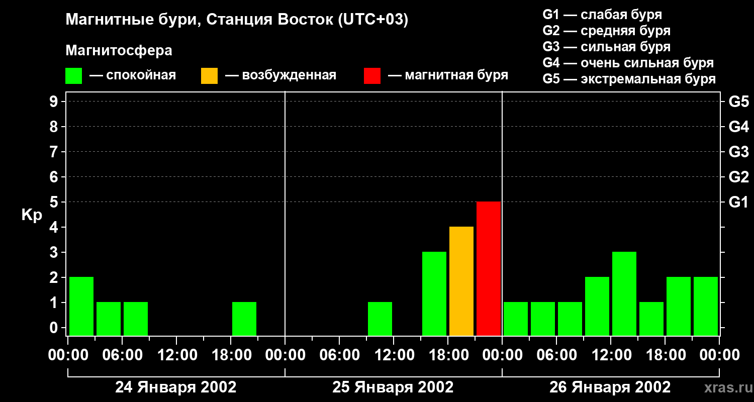 Магнитные бури локации Станция Восток — 26 января 2002 года