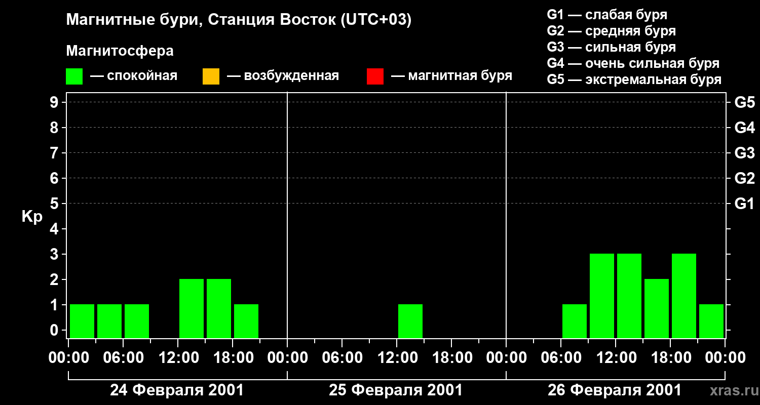 Магнитные бури локации Станция Восток — 26 февраля 2001 года