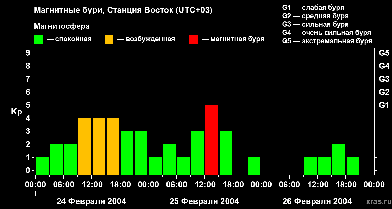 Магнитные бури локации Станция Восток — 26 февраля 2004 года