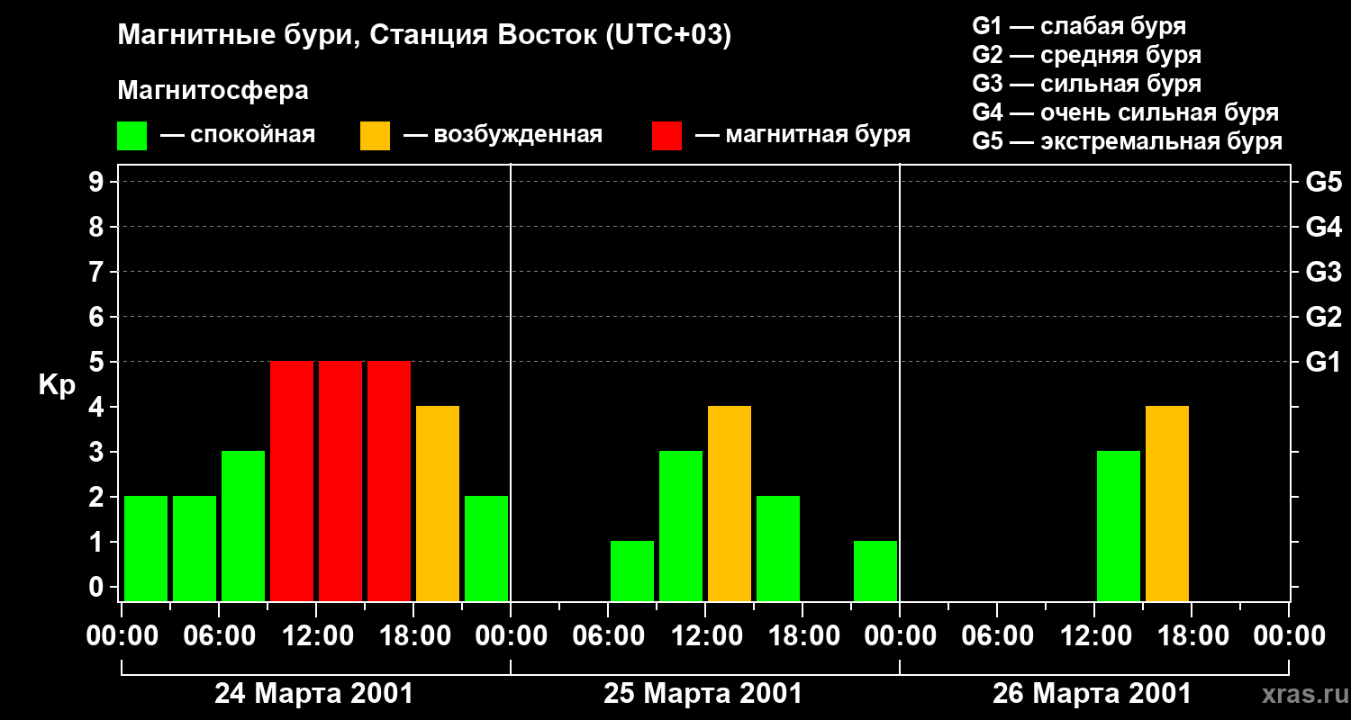 Магнитные бури локации Станция Восток — 26 марта 2001 года
