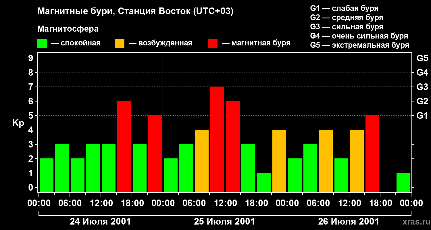 Магнитные бури локации Станция Восток — 26 июля 2001 года