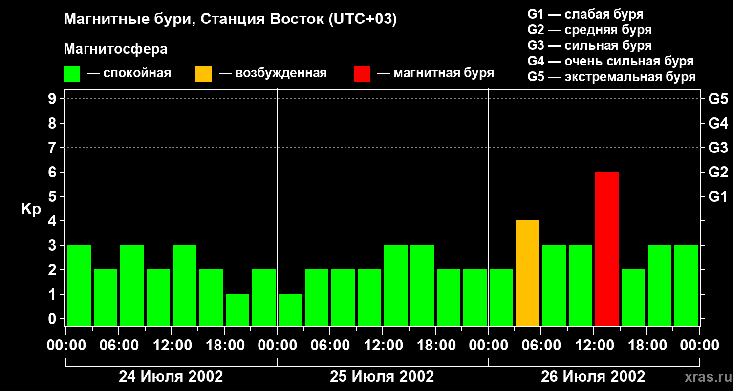 Магнитные бури локации Станция Восток — 26 июля 2002 года