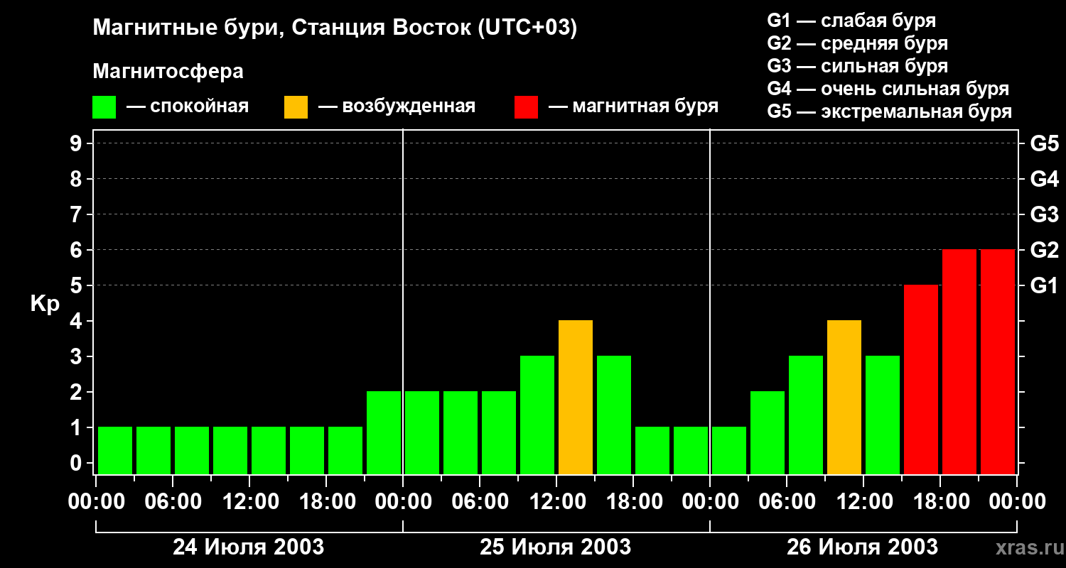 Магнитные бури локации Станция Восток — 26 июля 2003 года