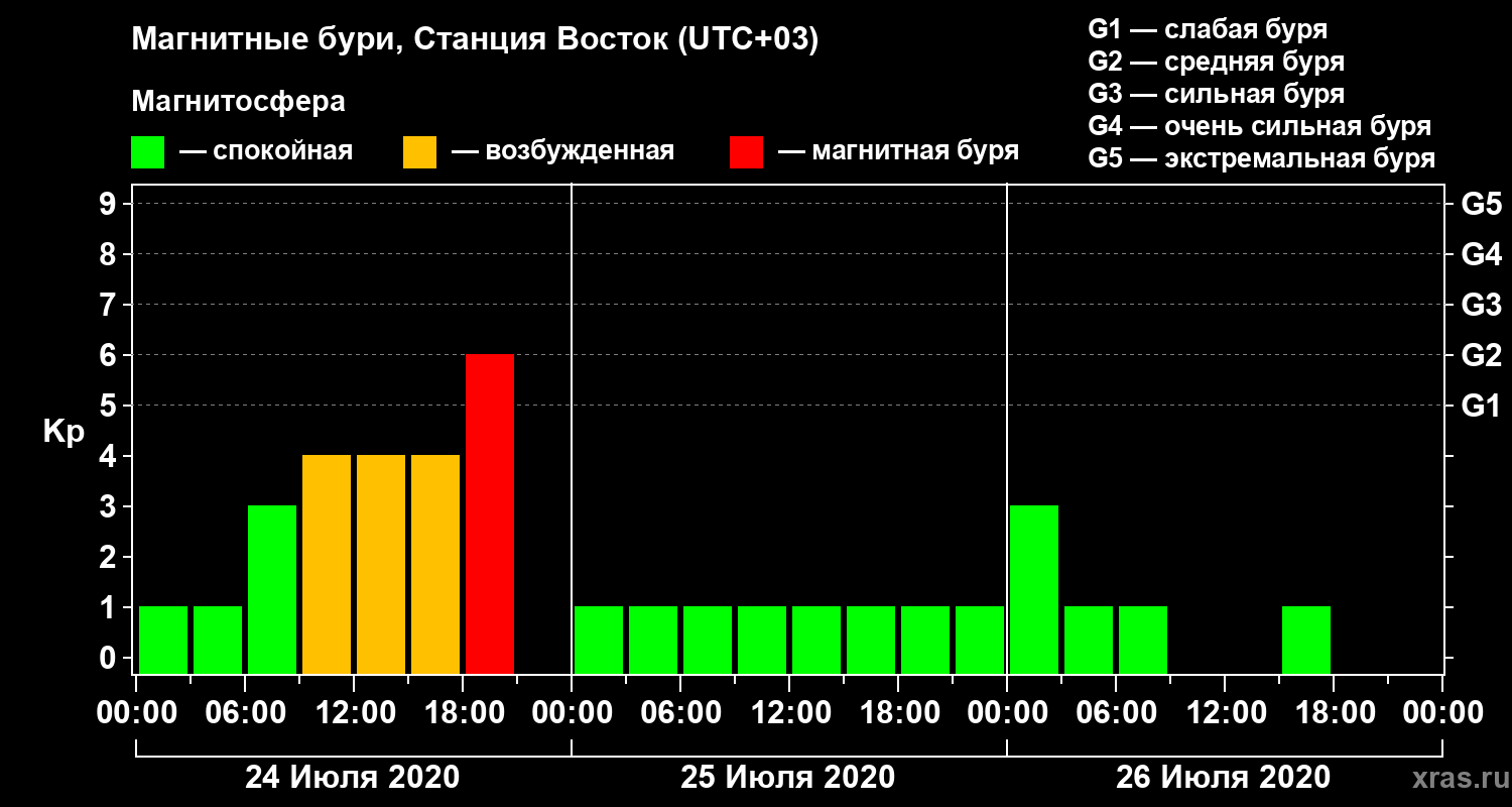 Магнитные бури локации Станция Восток 26 июля 2020 года